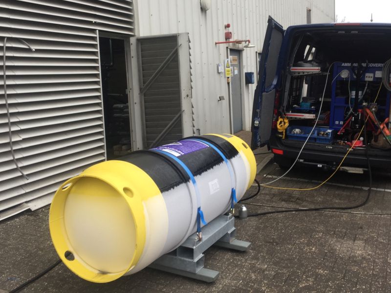 430kg Ammonia decant today for Stonegrove Refrigeration. Not much room to spare in that drum!